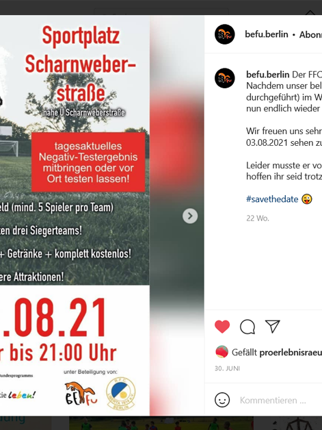 In dem partizipativen Jugendprojekt „Jugendfestival Reinickendorf 2023“ brachten Jugendliche aus Reinickendorf 2023 bereits das zweite Mal ihr eigenes Festival an Start – ganz nach ihren Wünschen und Vorstellungen und mit ihren Botschaften. Die Jugendlichen arbeiteten selbstorganisiert und eigenverantwortlich – sie wurden prozessual, methodisch und in finanziellen, organisatorischen und rechtlichen Fragestellungen von Festival-Coaches begleitet. Das Bezirksamt…