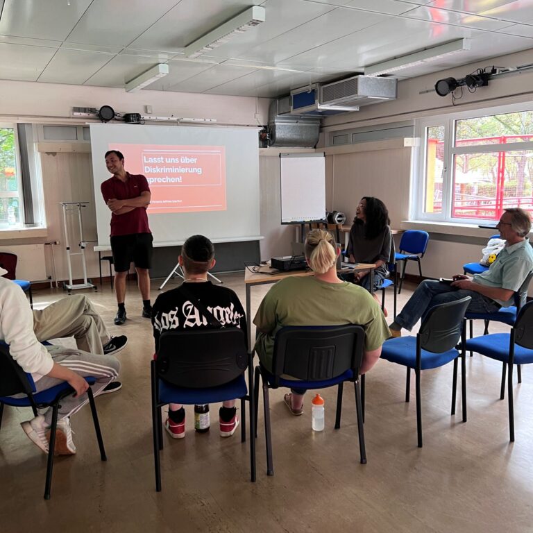 Am 20.06.2023 fand unsere Informationsveranstaltung zum Thema „Gegen Diskriminierung!“ im comX (Senftenberger Ring 53 – 69 13435 Berlin) statt. Der Input von Victoria Jeffries hat uns nochmal in vielerlei Hinsicht aufgeklärt was Diskriminierung eigentlich ist. Wir haben uns in der Runde ausgiebig zu unterschiedlichen Diskriminierungsformen und deren Verwobenheit miteinander ausgetauscht. Außerdem wurden sehr schöne Impulse…