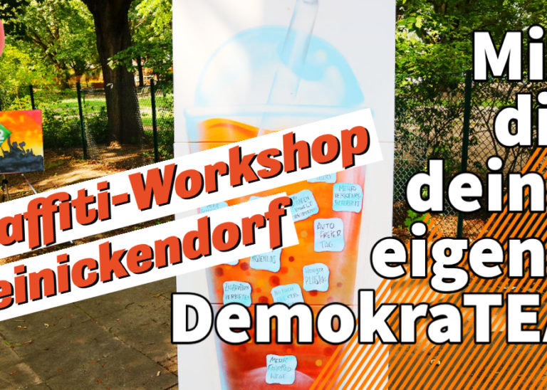 Demokratie für junge Menschen in Reinickendorf erlebbar machen „Stell dir vor, du kannst dir deine Nachbarschaft, deine Schule, deine Stadt… so zusammenstellen, wie einen Ice-Tea.“ Mit diesem Satz hat die Partnerschaft für Demokratie (PfD) im Sommer 2021 junge Menschen ab 11 Jahren auf einem Flyer angesprochen. Konkret ging es um einen Sommerferien Graffiti-Workshop mit dem…
