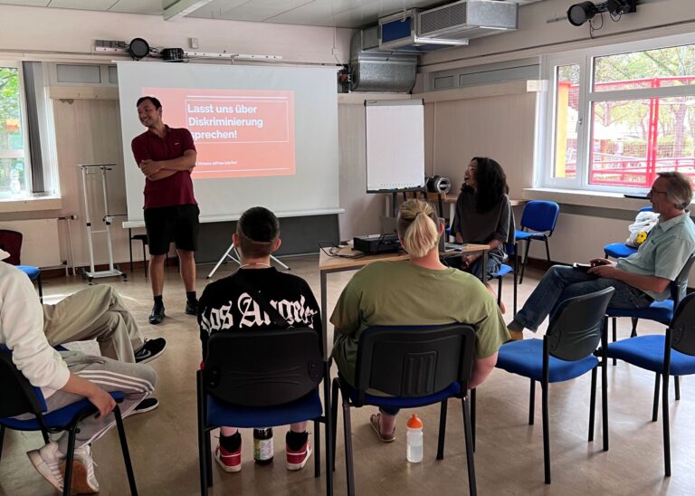 Am 20.06.2023 fand unsere Informationsveranstaltung zum Thema „Gegen Diskriminierung!“ im comX (Senftenberger Ring 53 – 69 13435 Berlin) statt. Der Input von Victoria Jeffries hat uns nochmal in vielerlei Hinsicht aufgeklärt was Diskriminierung eigentlich ist. Wir haben uns in der Runde ausgiebig zu unterschiedlichen Diskriminierungsformen und deren Verwobenheit miteinander ausgetauscht. Außerdem wurden sehr schöne Impulse…